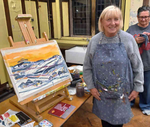 Periodically, we have an artist come in and give us a demonstration the latest of these was Jenny Aitken. Jenny demoed two pictures in Acrylics in under two hours. Enthusiastic, entertaining, enlightening are all accolades I could apply to Jenny but I think the best I can say is the two pictures looked as if they glowed with the light she talks about.