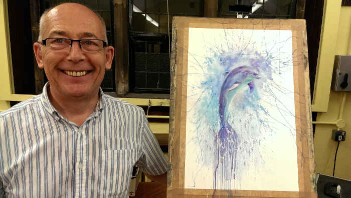 Dave Woolass came in a little while ago and gave us a fascinating demonstration of “Watercolours”. Interestingly his definition of watercolour is any paint that can be worked in the same way as watercolours with water. So it would include the transparent Acrylic Inks and Paints.
