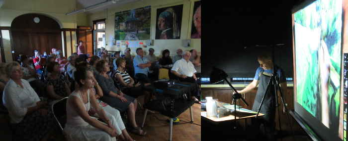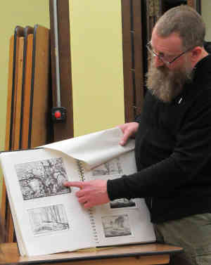 Duncan Pass came and gave us an informal evening where he discussed his journey in and through art. He is primarily a print maker but also a painter and he showed us his portfolio whilst describing his journey and his feelings about art. His prints are mostly black and white although the finer etchings appear to be grey scale. In fact on the copper plate he showed us as part of the presentation the lines were so fine as to almost require a magnifying glass to be seen.