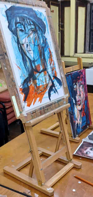 Last night (29th Feb 2024) was an unusual one in that we had a return visit from an artist Steph Coley, this time she demonstrated abstract collage and I need to be honest here it was not my thing. However, several of the others present were very complementary and the thought of being able to start an artwork with no final target is very appealing. I must also say I loved the collage portrait (further down) she produced at her last visit.